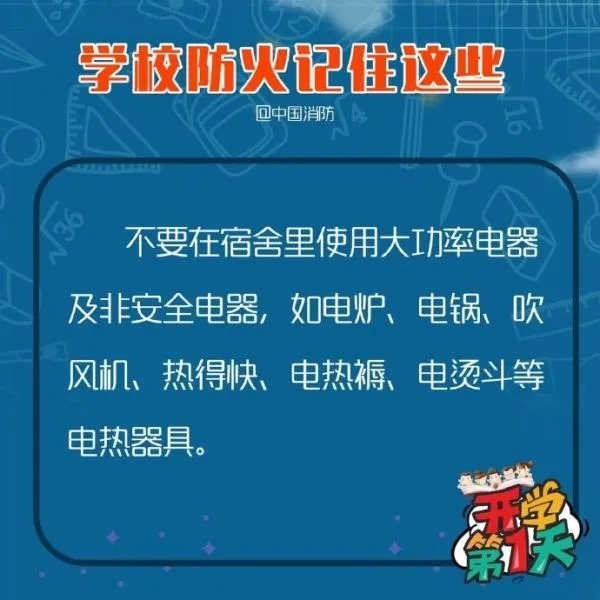 目前,全国多地毕业年级学生复课。学校是人员密集场所,宿舍实验室等重点部位要注意防火安全,尤其是住宿舍的同学切不可使用大功率电器。安全时刻放心中,好好学习!