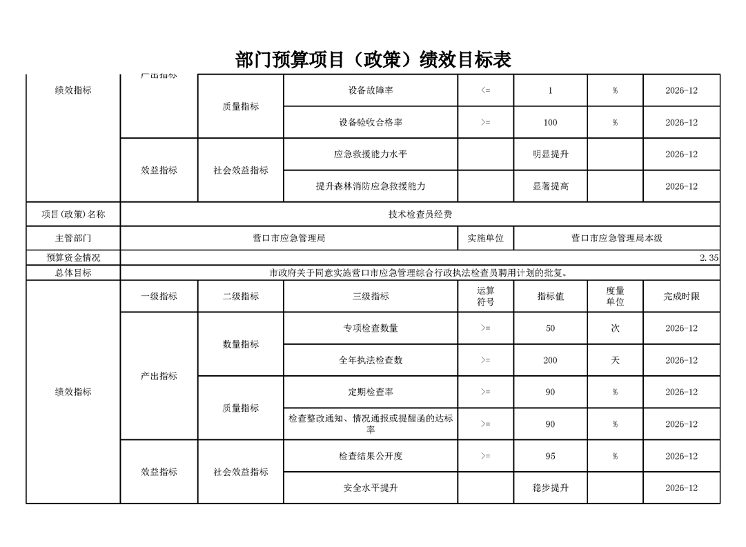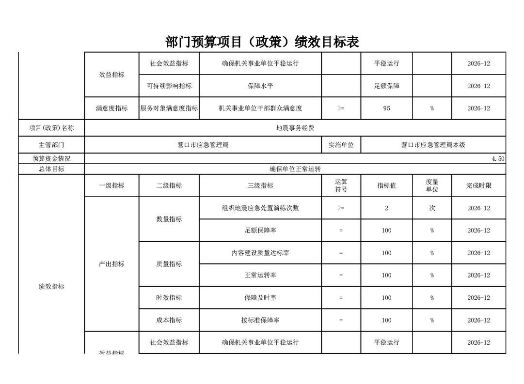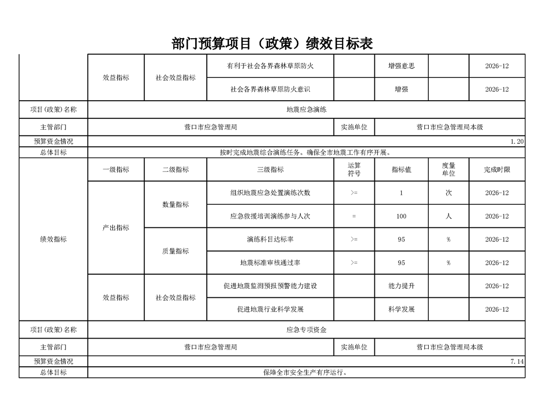 2026年营口市应急管理局部门预算公开