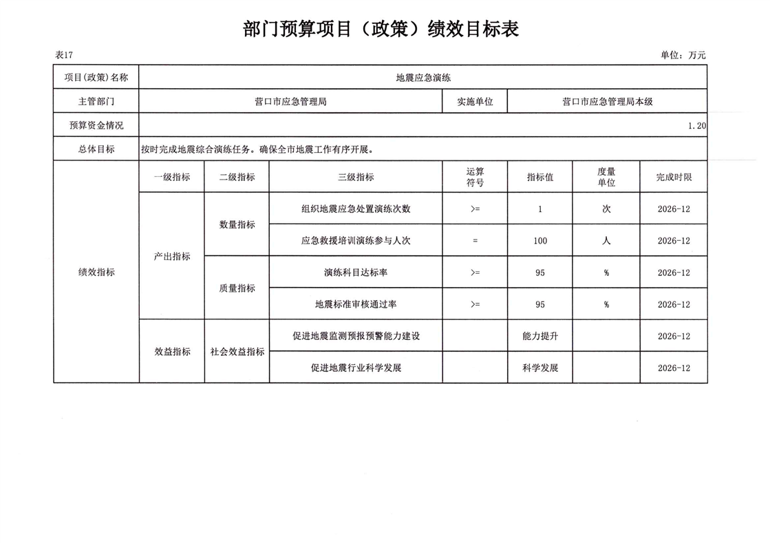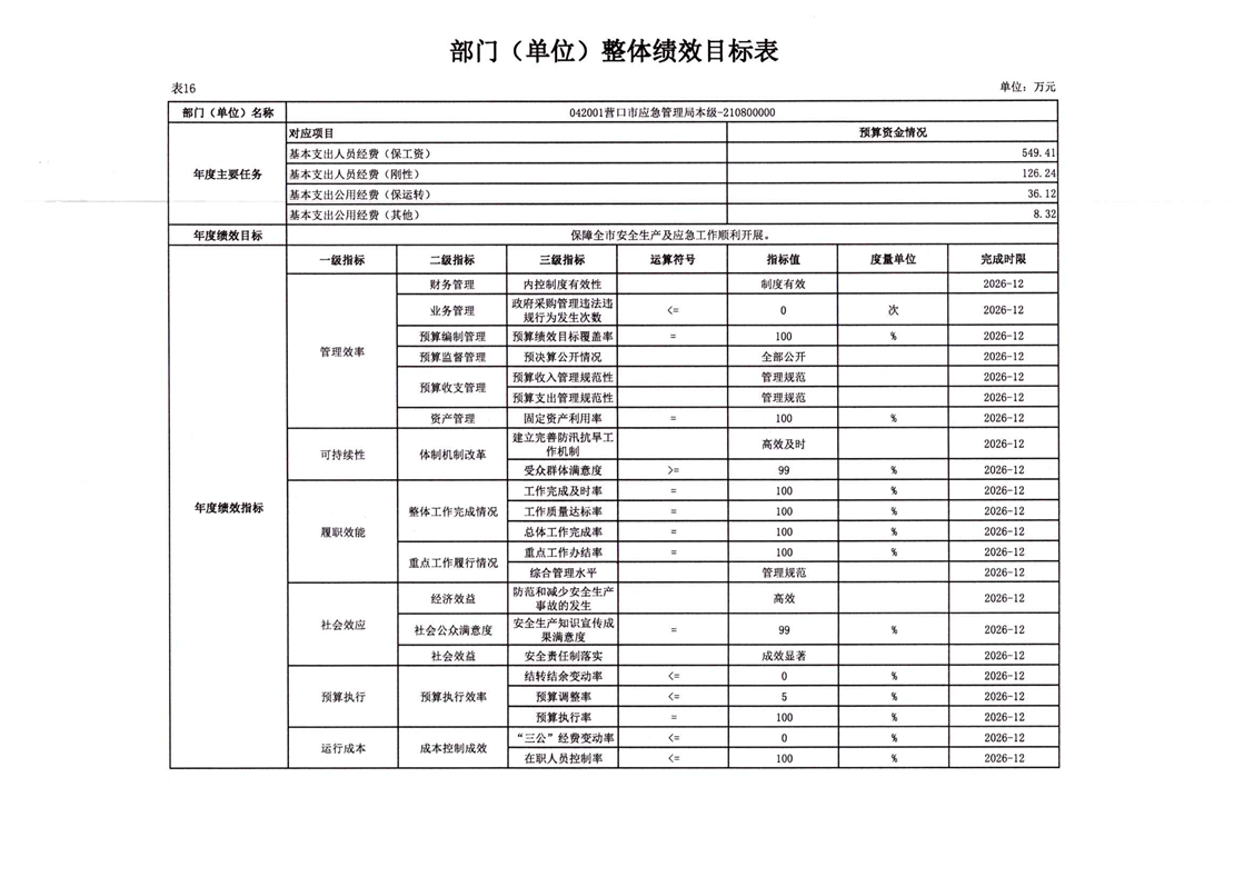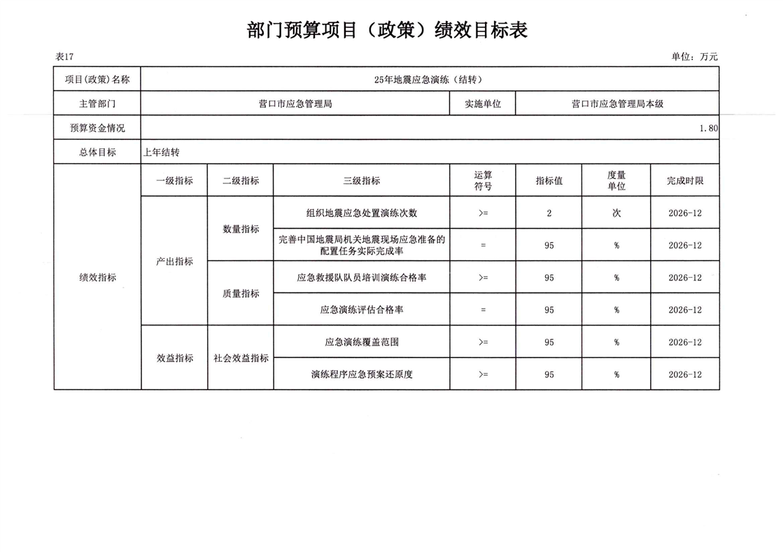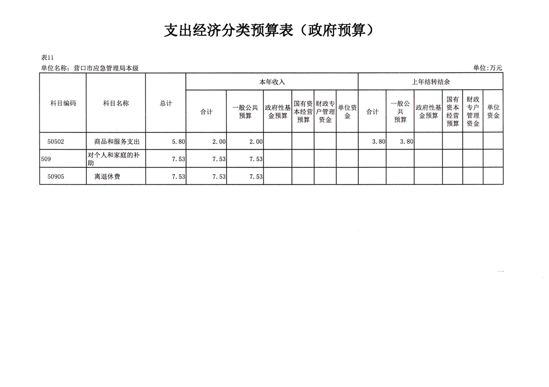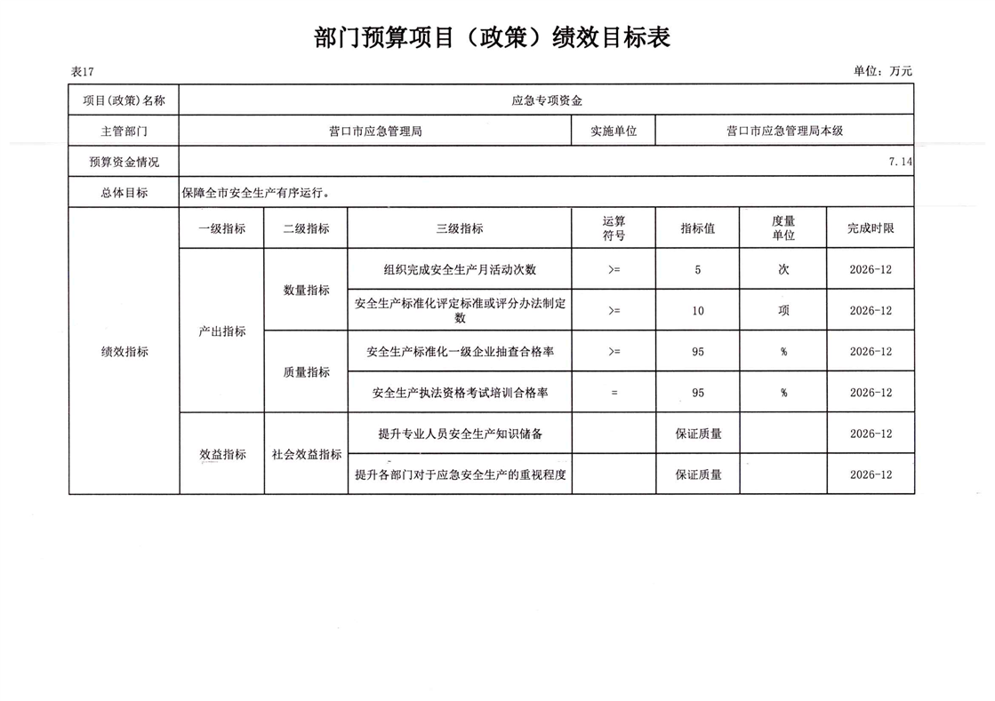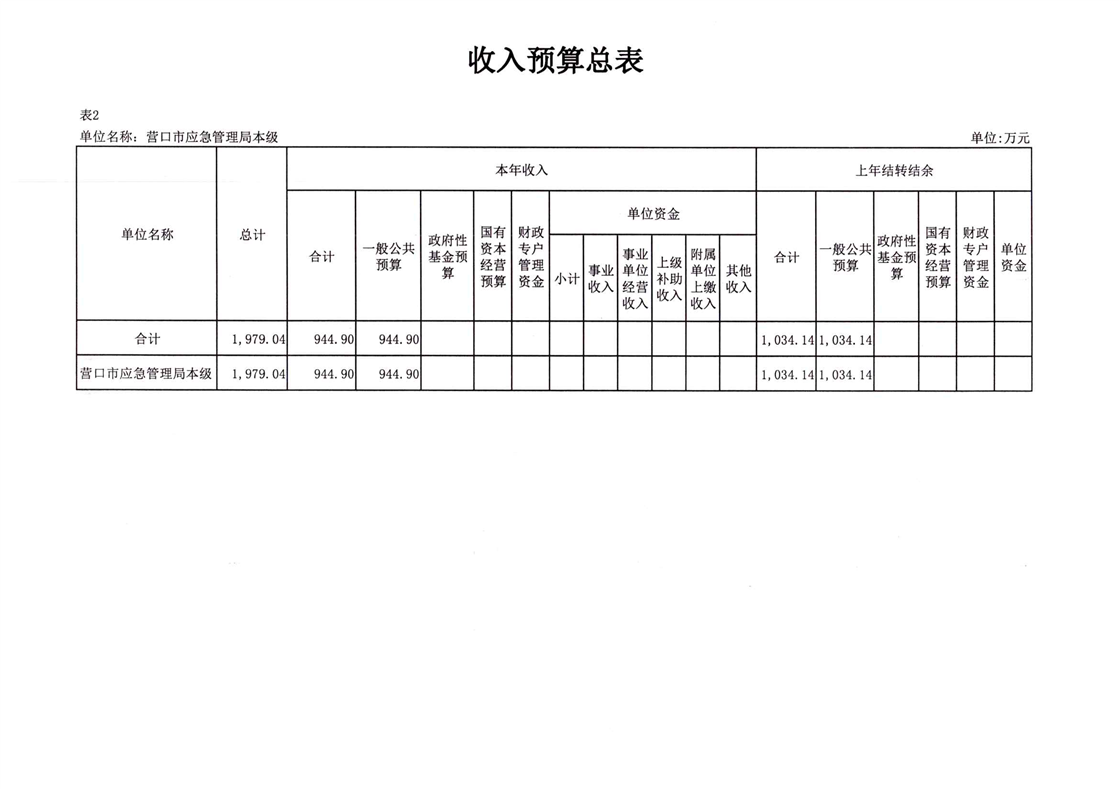 2026年营口市应急管理局本级预算公开