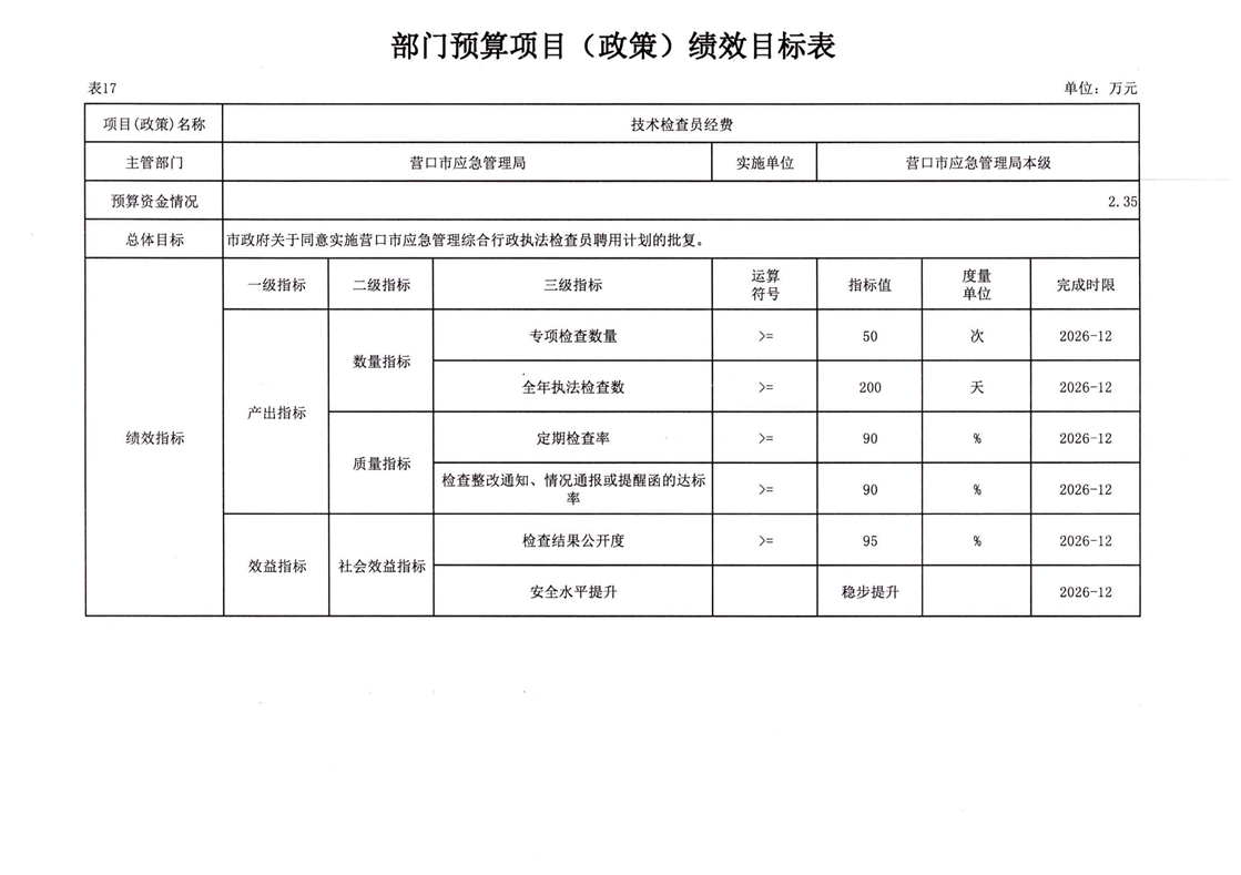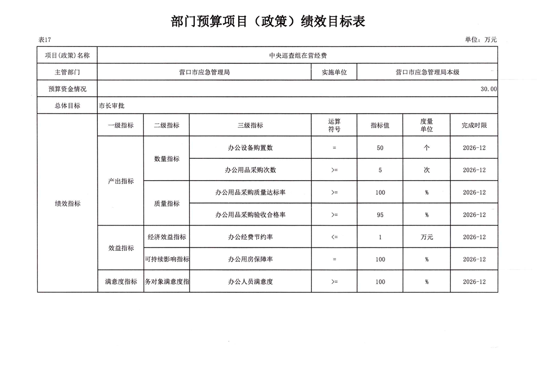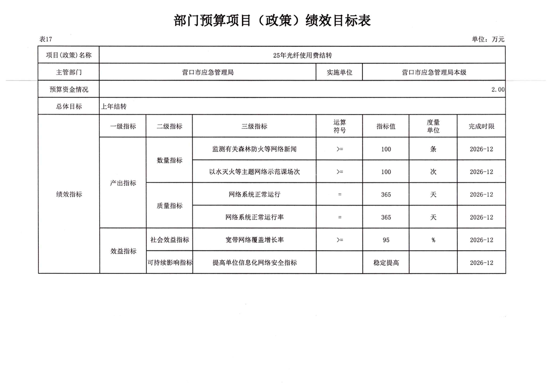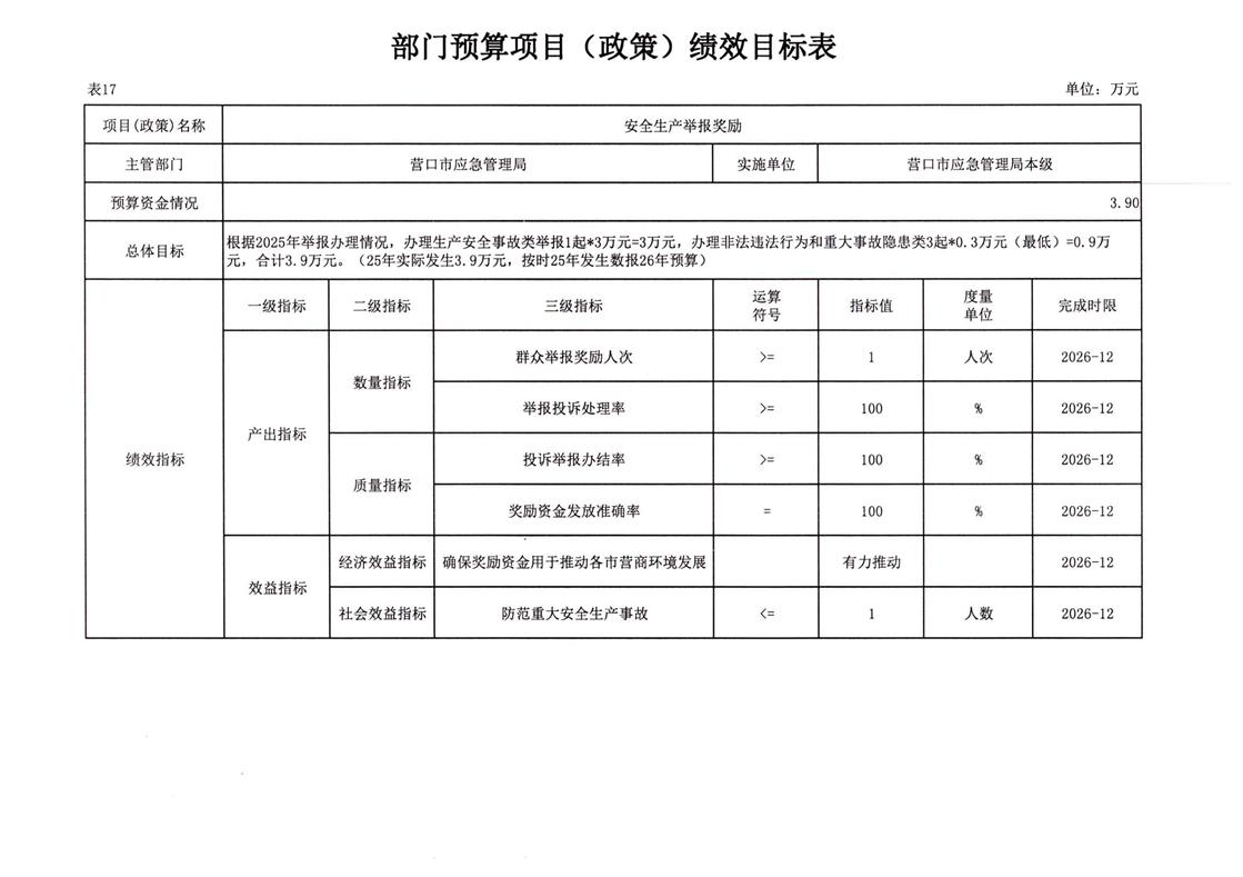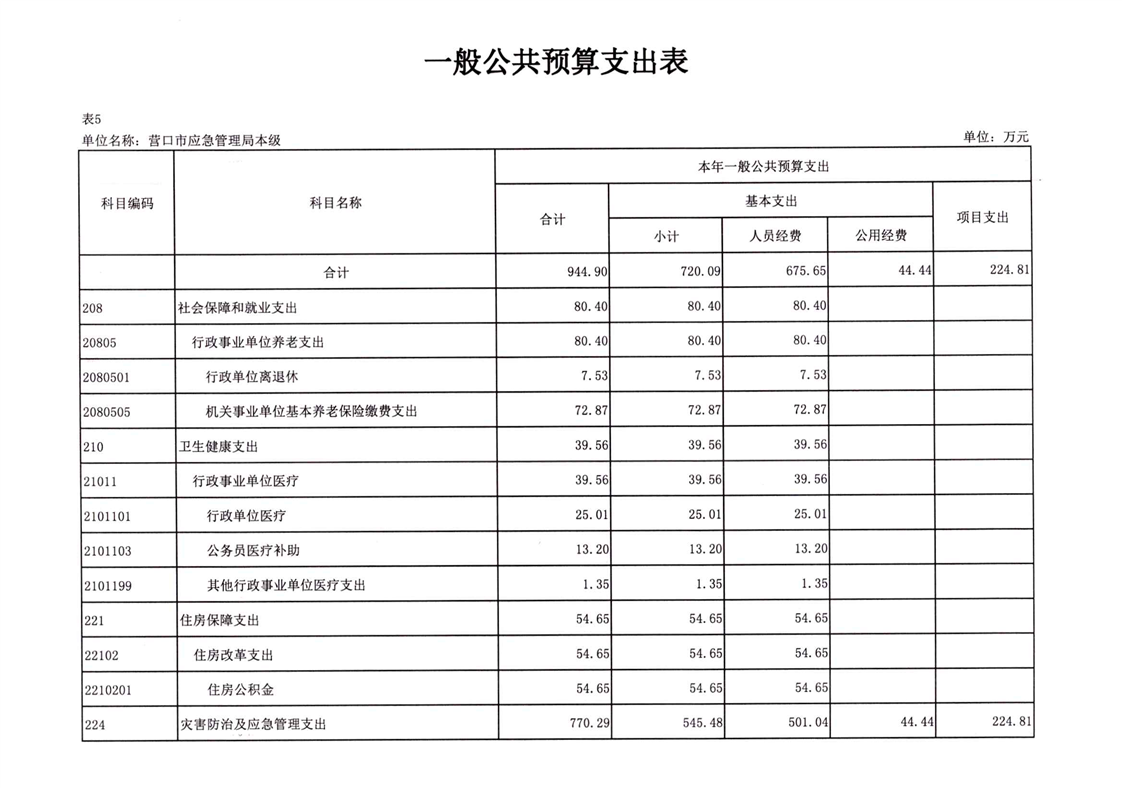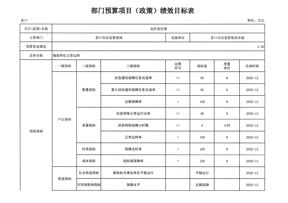 2026年营口市应急管理局本级预算公开